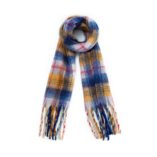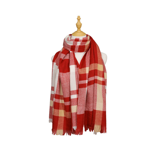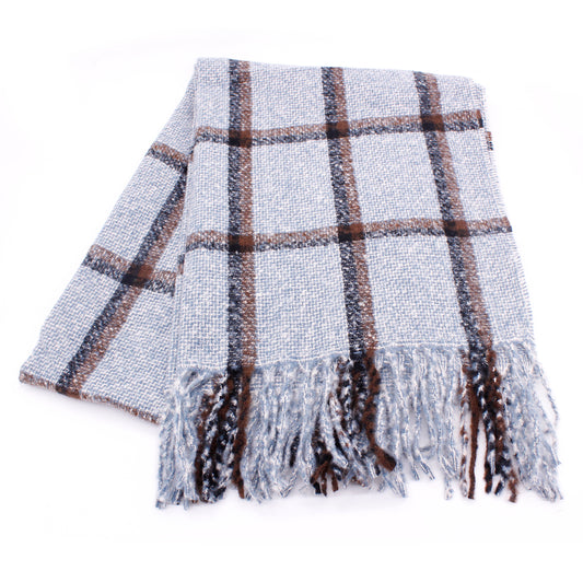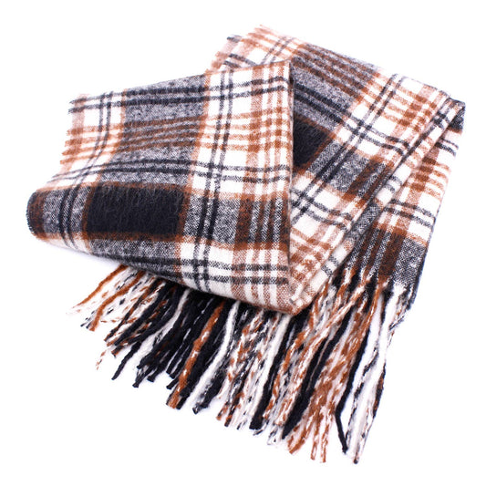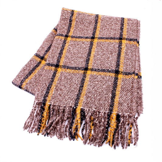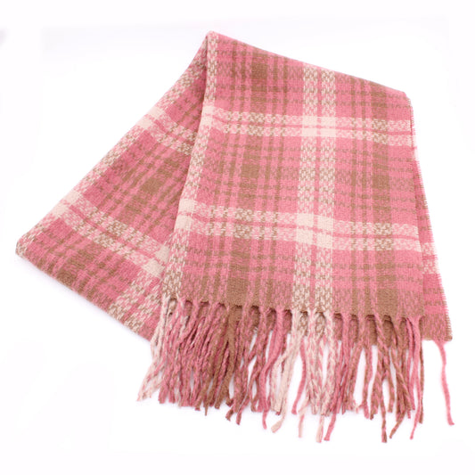CLASSIC FLUFFY PLAID PRINT FRINGE SCARF