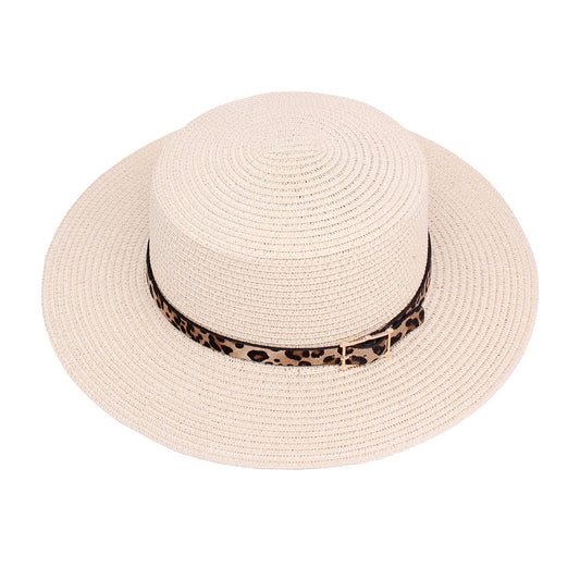 LEOPARD PRINT BELT DETAIL SUN STRAW HAT