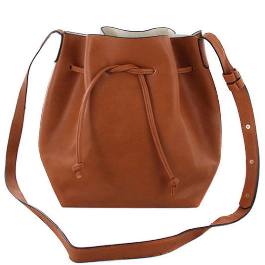 LEATHER DRAWSTRING CROSSBODY BUCKET BAG