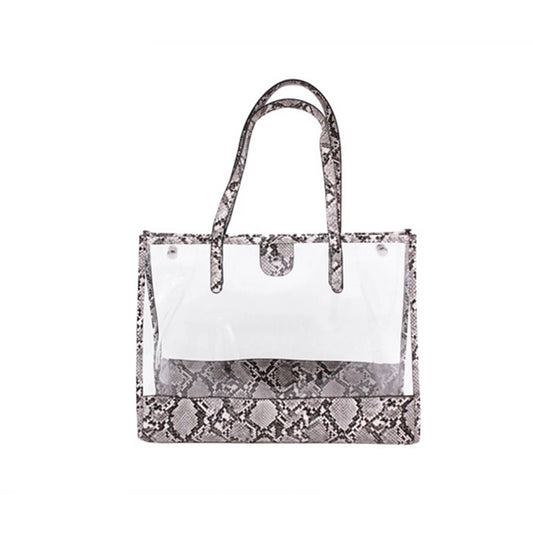 CLEAR PVC SNAKE TRIM TOTE BAG
