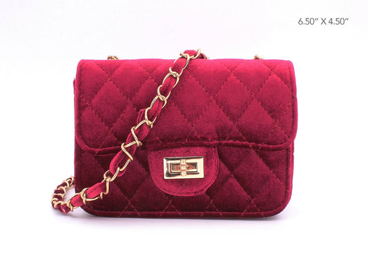 QUILTED VELVET WITH GOLD CHAIN CROSSBODY PURSE