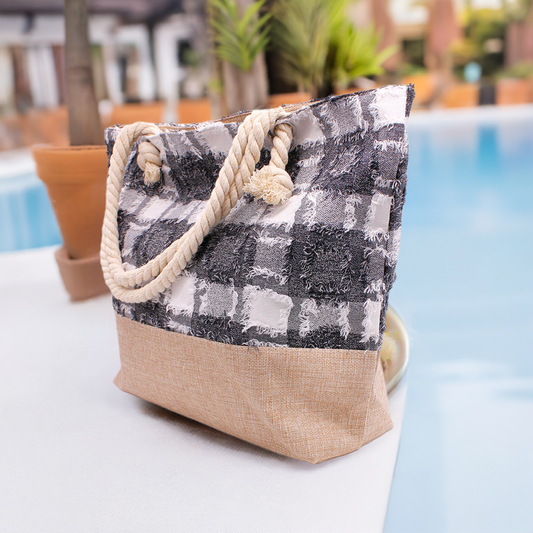 LARGE STRAW FRINGE TROPICAL VACATION TOTE BAG