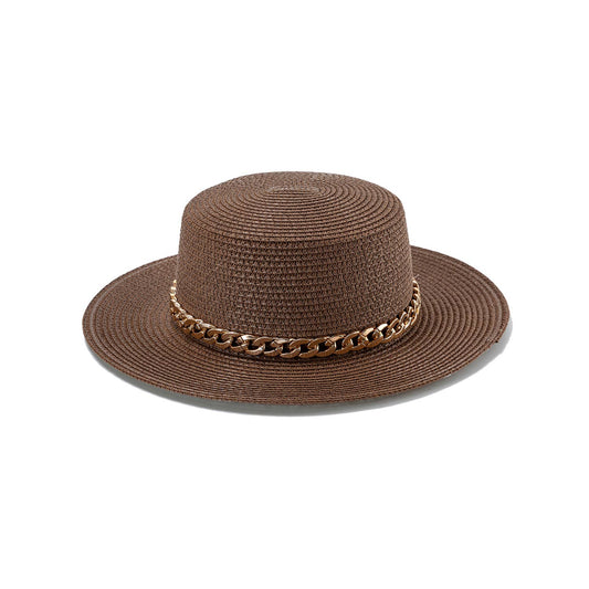 Acrylic Chain Flat Top Straw Sun Hat