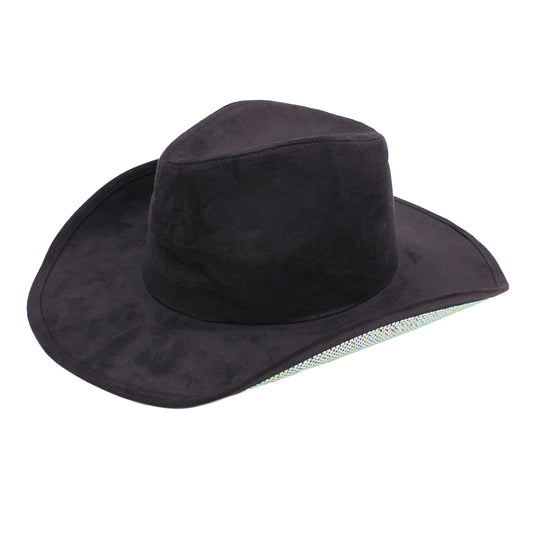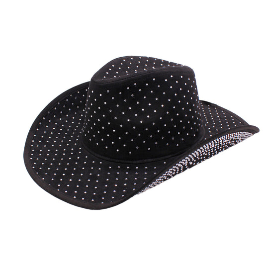 Crystal-Studded Wide Brim Cowboy Hat with Suede Finish